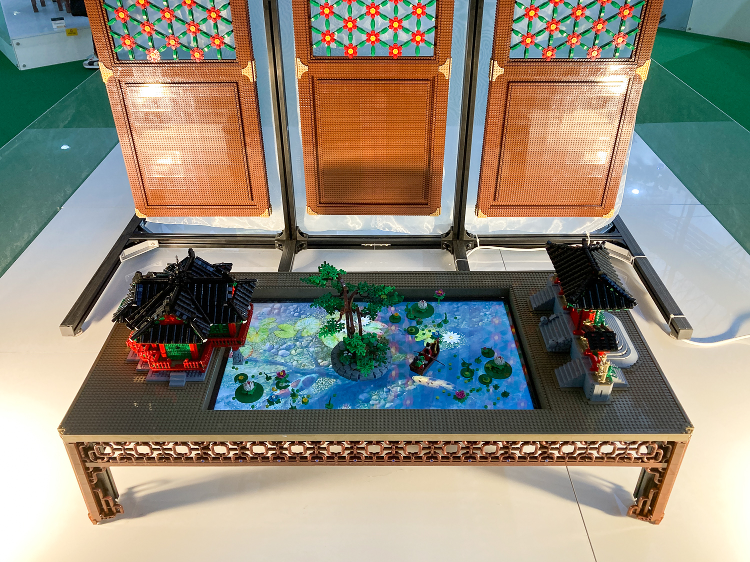 35000여개의 브릭을 이용해 만든 창덕궁 후원 부용지 일대의 디오라마입니다. 이전에도 '불국사' 등으로 한국 전통건축 재현에 탁월한 기량을 보여주셨던 (MBC 블록버스터 프로그램으로도 익숙한) 햐야로비 님의 작품이었네요. 부용지 연못 자체는 모니터 스크린 동영상을 이용하여 더욱 놀라운 효과를 얻었습니다. 이런 퓨전 좋아해요.